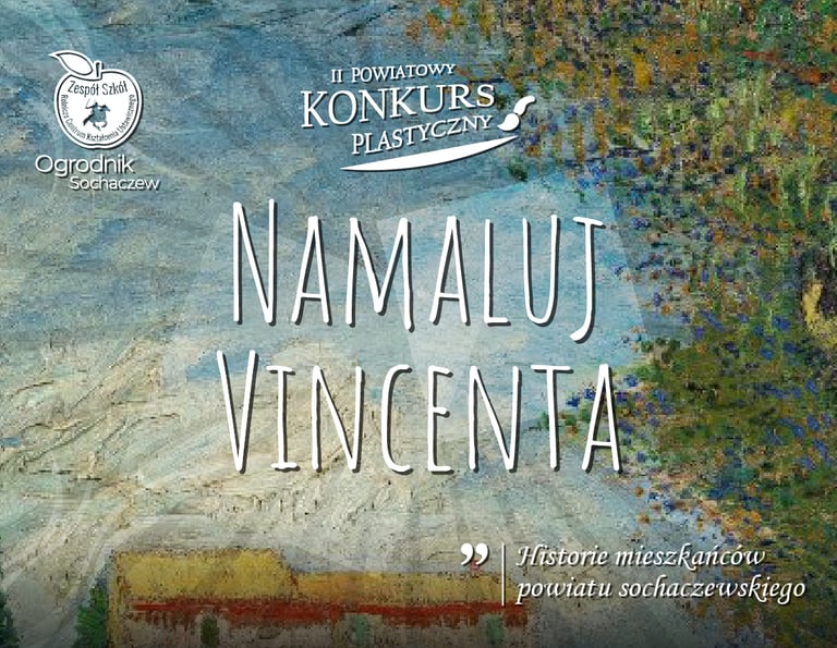 II Powiatowy Konkurs Plastyczny „Namaluj Vincenta – Historie mieszkańców powiatu sochaczewskiego” 🎨 to inicjatywa artystyczna skierowana do dzieci i młodzieży z przedszkoli, szkół podstawowych oraz szkół ponadpodstawowych z terenu powiatu sochaczewskiego. Konkurs organizowany jest przez Zespół Szkół RCKU w Sochaczewie i ma na celu rozwijanie kreatywności, wrażliwości artystycznej oraz zainteresowania sztuką wśród młodych twórców.